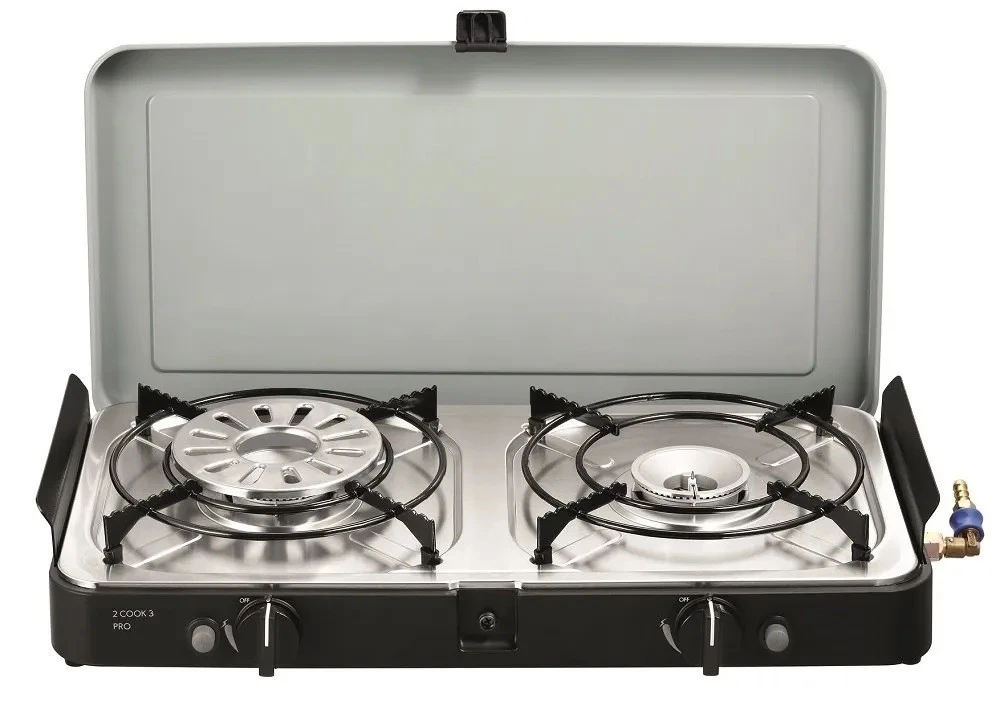 The possibility of discovery is endless with the 2 Cook 3 Pro Deluxe QR. With new features such as; gas ignition protection, bottom heat shield, dual windshields, coffee pot stand and a grill plate handle, the 2 Cook 3 Pro Deluxe barbecue is the ultimate camping companion, whether camping, caravanning or picnicking.
