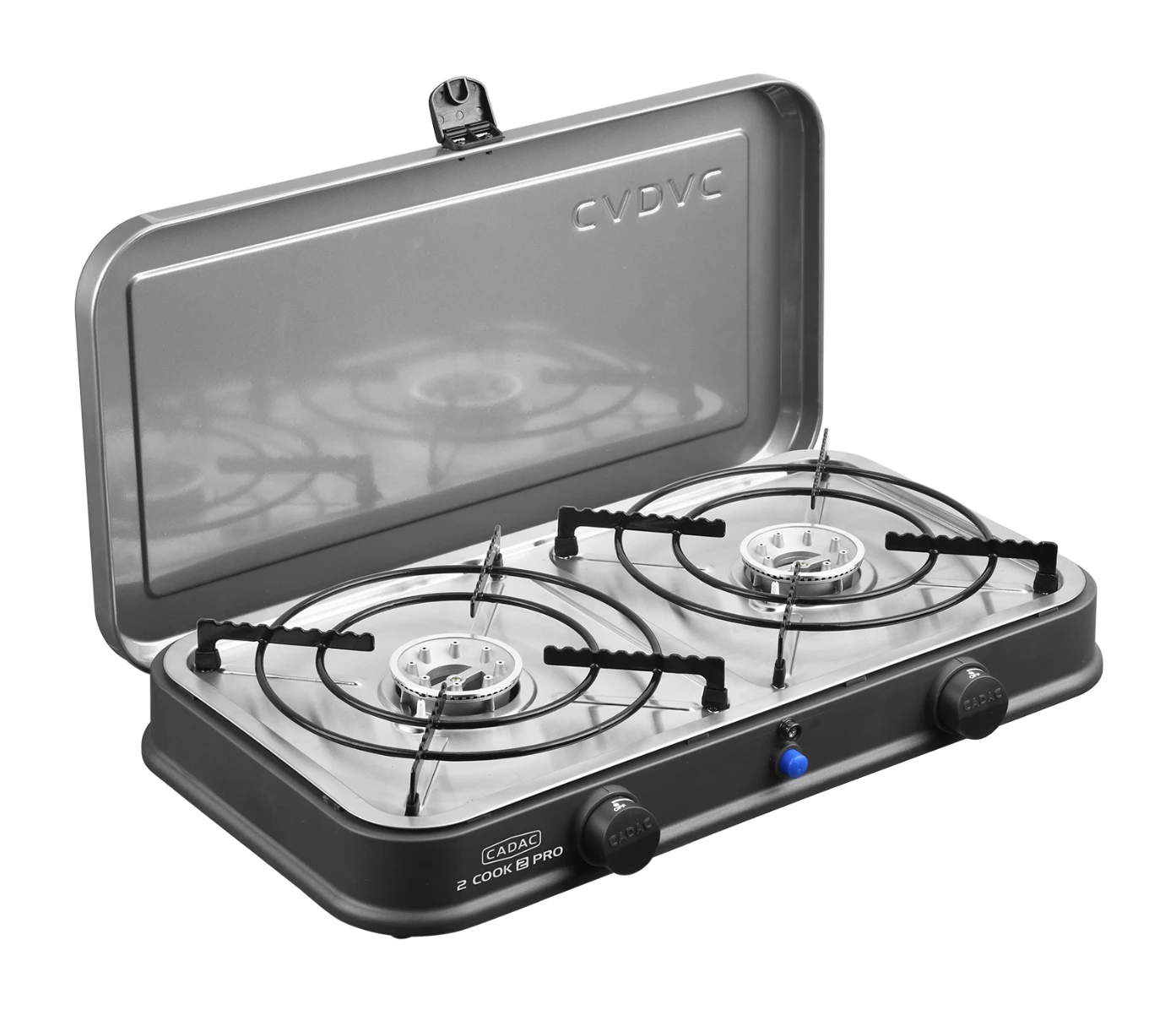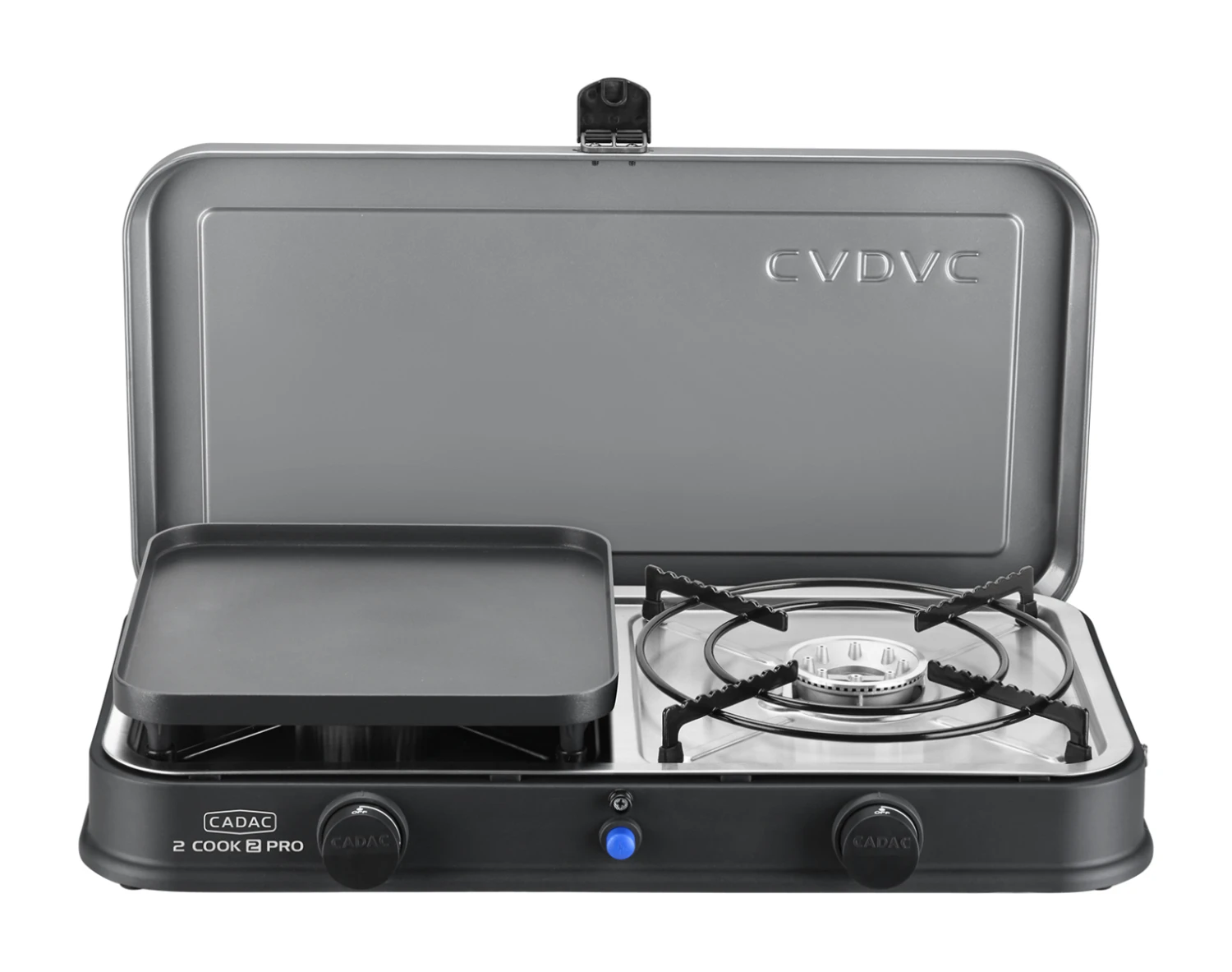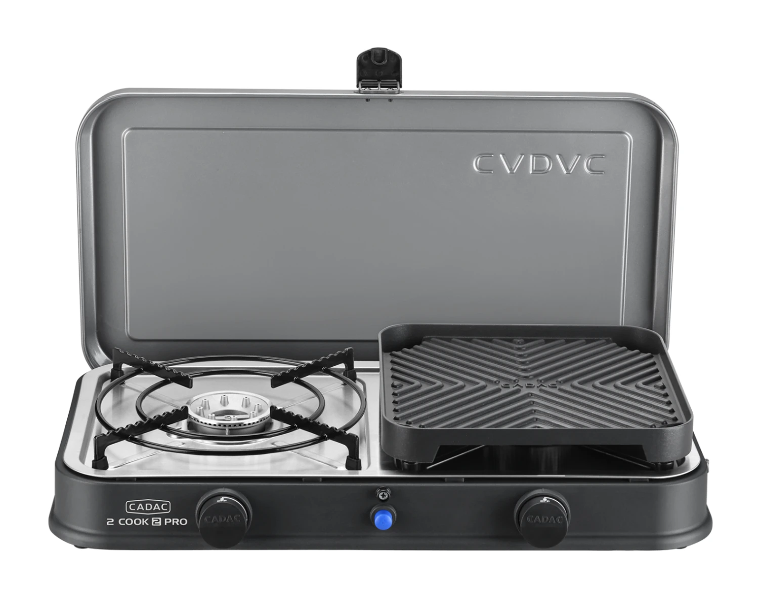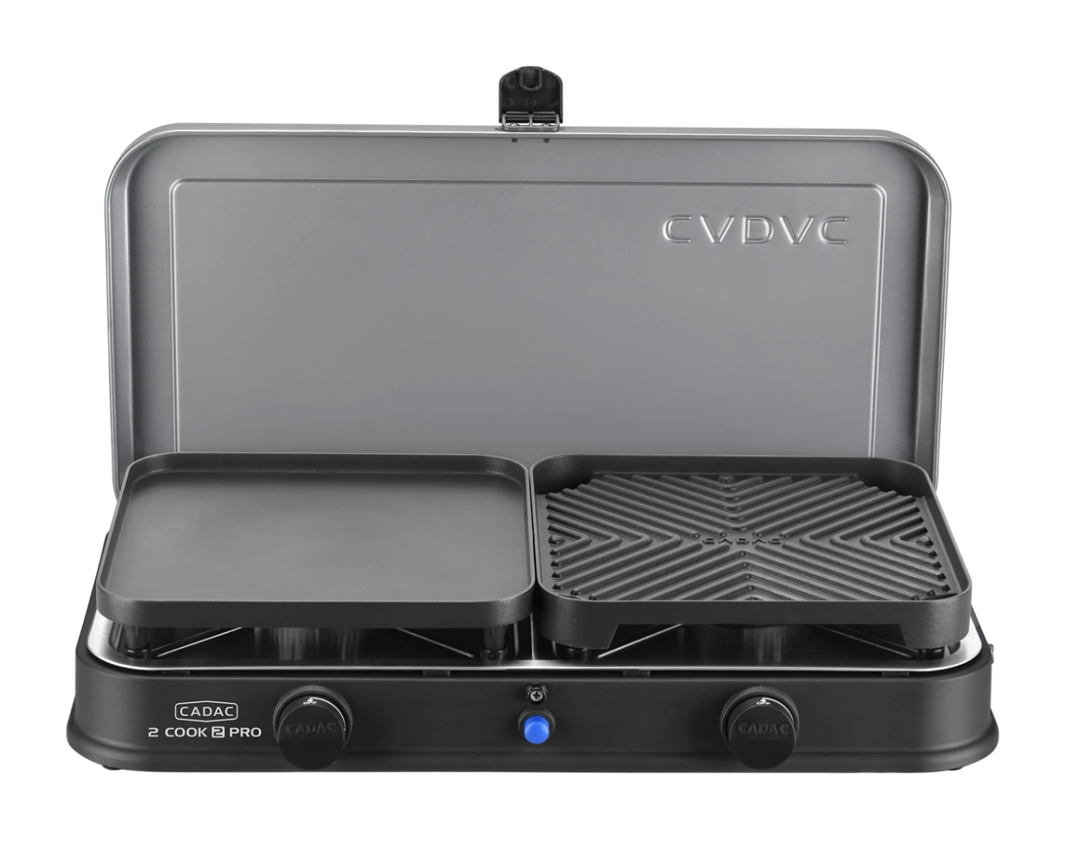 This stylish gas barbecue is the ultimate table top companion, with an integrated 90 degree rotating quick release coupling. The unit has two independent burners, each with piezo ignition. Don’t let its size deceive you, the 2 Cook 2 knows no limits. Comfortably catering for 2-4 people, this versatile BBQ comes with two pot stands, a ceramic flat grill plate and a ceramic ribbed grill plate. The unit works on a refillable gas bottle and comes with a convenient carry bag for easy portability and storage, making it ideal for whatever outdoor activity your heart desires.