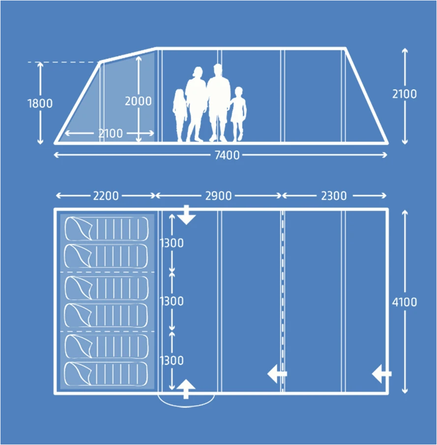 • Very quick to pitch using the Kampa AIR Frame and manual air pump provided. 5 air tubes to inflate.