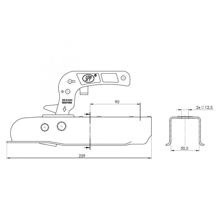 Pressed steel 50mm coupling for 50mm square tube drawbars