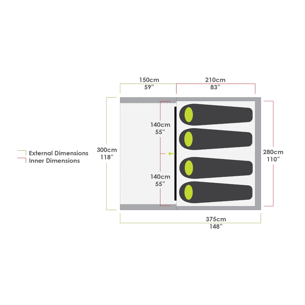• It is important that lower vents are opened at all times to reduce condensation. During humid or damp conditions, it is recommended that the waterproof door covers are opened to expose the mesh layer, enabling additional airflow throughout your tent.
